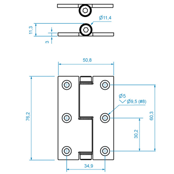Gångjärn friktion 76x50 normal