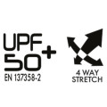 Med **4-vägsstretch** på handryggen får du perfekt passform och full rörelsefrihet, medan materialet är vattenavvisande och ger **UPF 50+ solskydd**. Handskarna är utformade med förskjutna fingersömmar för att eliminera tryckpunkter och förbättra komforten. Den förformade konstruktionen följer handens naturliga form, medan den reducerade mudden och den justerbara stängningen säkerställer optimal rörelse och komfort.