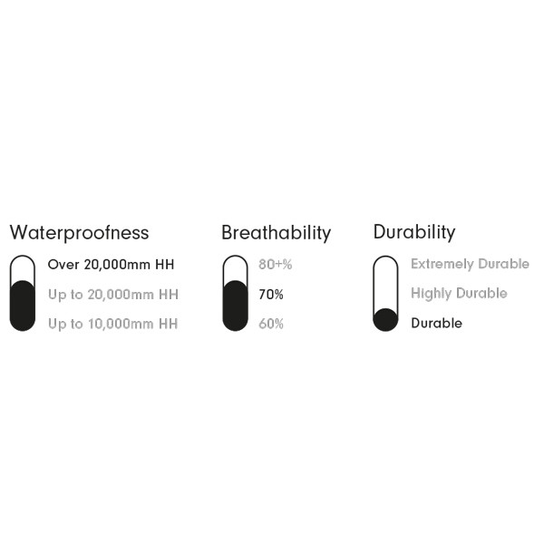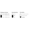 | Vattentäthet | Upp till 20.000 mm HH | ||||||||||||