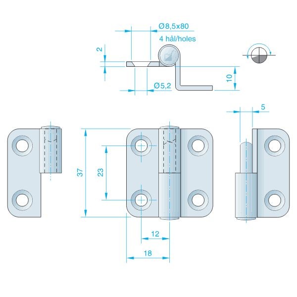 Roca dörrgångjärn förskjutet RF, 38x37x10mm