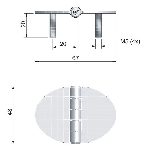 Roca gångjärn ellips m fasta M5-skruvar RF, 67x48mm