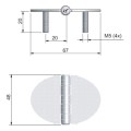 Gångjärn av rostfritt syrafast stål AISI 316. Med fasta M5-skruvar.