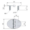 Roca gångjärn ovalt m fasta M5-skruvar RF, 51x35 mm