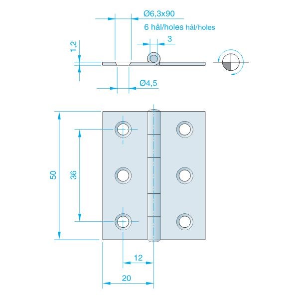 Kantgångjärn av rostfritt stål AISI 304
