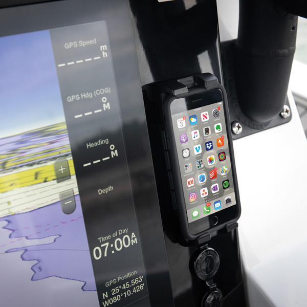 SC‑CW‑04G är en vattentät, justerbar trådlös laddningshållare för installation ombord. Den ger stabil laddning och säkerställer att din telefon alltid är inom räckhåll. Systemet är speciellt utformat för marint bruk och är helt kapslat i en IPX6-klassad konstruktion. Laddaren använder Qi-certifierad trådlös laddning och kan leverera upp till 15 W. De självjusterande käftarna håller telefonen och placerar den i optimalt laddningsläge, vilket ger dig pålitlig laddning utan behov av kablar. En "Smart LED" indikerar laddningsstatus, och systemet har inbyggt skydd mot främmande föremål och termisk avstängning, vilket garanterar säker laddning i alla miljöer. Enheten fungerar med både 12 V och 24 V, vilket gör installationen flexibel i de flesta båtmiljöer.·Justerbar hålare för telefoner från 120 till 172 mm långa