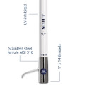KS-41 är en kompakt AIS-antenn i TITAN-serien, designad för båtar där utrymmet är begränsat, men stabil mottagning och hög tillförlitlighet fortfarande krävs. Den korta konstruktionen på 1,2 m gör antennen enkel att placera på mindre styrhytter, konsoler eller relingen.Antennen är tillverkad av 2 mm glasfiber, vilket ger god styrka och motståndskraft mot väder och vibrationer. Basen är tillverkad av elektropolerat rostfritt stål AISI 316 med konisk design, vilket säkerställer en solid och korrosionsbeständig montering.