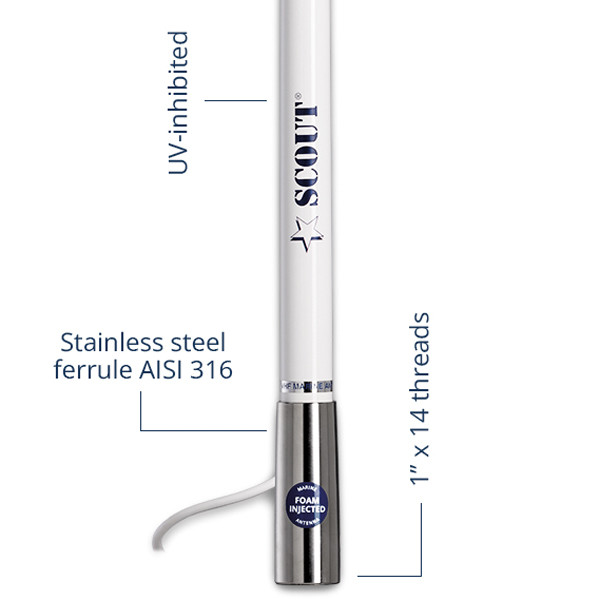 Scout Titan KS-41 VHF antenn 1,2m, 6m kabel & FME/PL - Vit