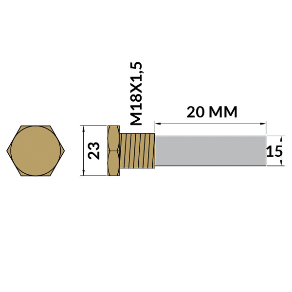 Anoden används till Yanmarmotorers kylsystem som använder 20x15mm M18x1,5-gänga