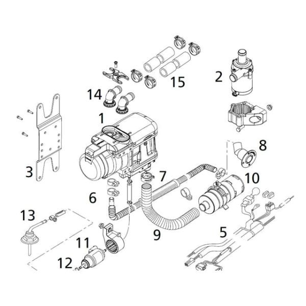 Webasto vattenvärmare levereras med kontrollpanel och med monteringssats.